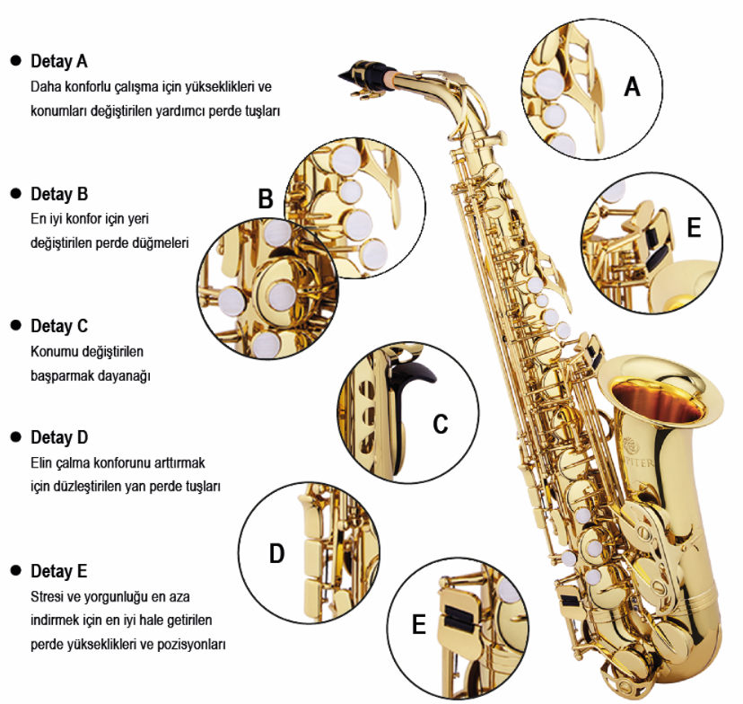 Jupiter JAS510 alto saksafon, kalitesi kanıtlanmış, başlangıç seviyesinde bir enstrümandır.
