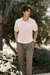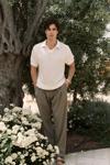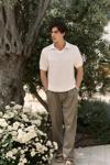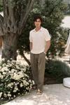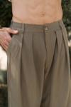 Pilili, rahat formda, bol kısa paça, erkek pantolon.