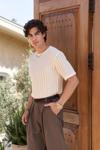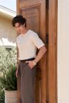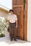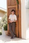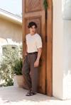 Pilili, rahat formda, bol kısa paça, erkek pantolon.