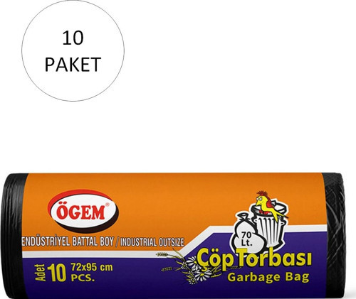 Endüstriyel Battal Boy Çöp Torbası 72 x 95 cm 10 Lu Rulo x 10 Paket = 100 Adet (Siyah)