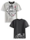 2'li paket T-shirt. Siyah ve gri melanj. Kısa kol, bisiklet yaka. Üzeri grafitti baskılı. Tüm Denokids ürünleri Avrupa standartlarında "Çocuk Güvenliği Kuralları" gözetilerek üretilmiştir. İğne dedektörlerinden geçirilmiştir.