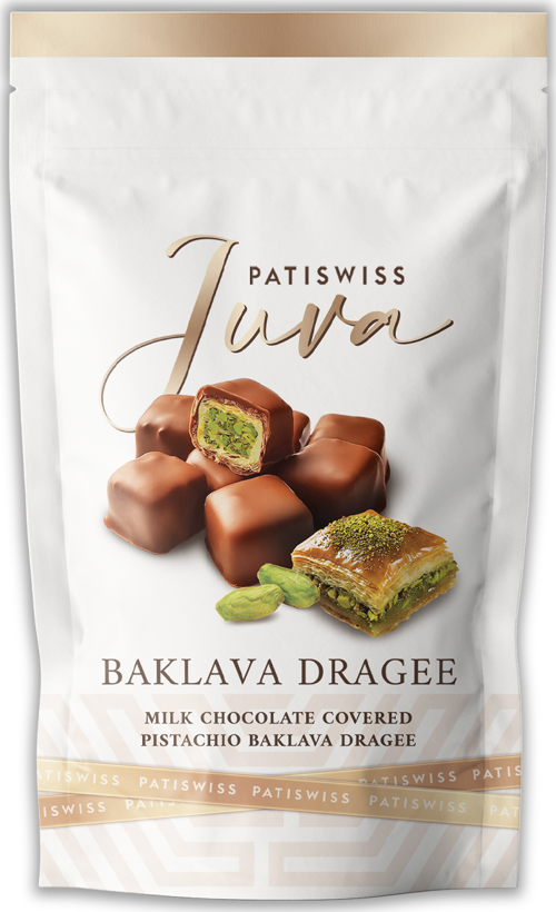 Patiswiss Baklava Draje, geleneksel Antep fıstıklı baklavayı ve sütlü çikolatanın yumuşak dokusunu benzersiz bir atıştırmalıkta birleştiriyor. %60’ı gerçek Antep fıstıklı baklavadan oluşan bu lezzet, ghee (sade yağ) ve %30 Antep fıstığı içeriğiyle yoğun ve otantik bir tat sunar. %37 kakao kuru maddesi içeren sütlü çikolata kaplaması, tatlı ve çıtır dokuyu mükemmel şekilde tamamlar. Koruyucu ve katkı maddesi içermez. Hediye, özel günler veya keyifli anlar için mükemmel bir lezzet.
