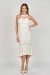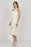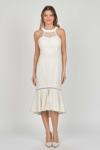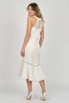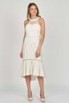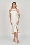 Detay: Etek ucu volanlı, önden yırtmaçlı, astarlı abiye elbise;