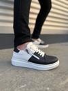 Joy Ayakkabı JY155 Warrior Bağcıklı ve Fermuarlı Cilt Erkek Günlük Sneaker Ayakkabı CBT - Beyaz/Siyah