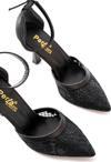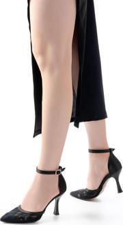 K-404 Siyah Fileli Çiçek Detaylı Kadın Topuklu Ayakkabı
