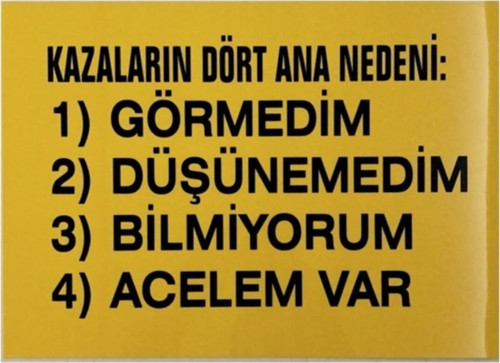 K Karaaliler Iş Güvenlik Uyarı Levhası Pvc 25X35 Kazaların Dört Ana Nedeni