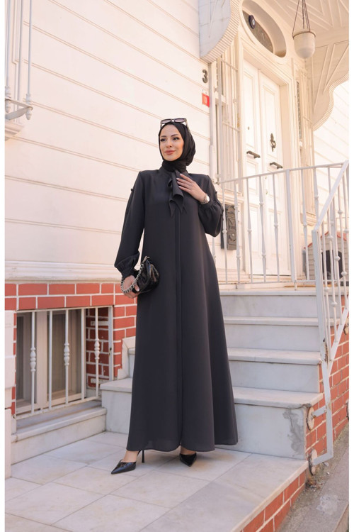 Felora Ferace 9010 Kolu Düğmeli Kravat Yaka Ferace 42-52 beden arasında 143 cm'dir Petek Kumaştır Manken Ölçüleri