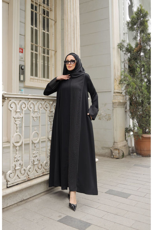 Zarif çizgili tasarımı ve akışkan yapısıyla dikkat çeken Boydan Çizgili Abaya, Dubai ipeğinin yumuşak dokusuyla gün boyu konfor sunar. Hafif yapısı sayesinde hem günlük kombinlerde hem de özel davetlerde şıklığınızı ön plana çıkarır. Makinede yıkanabilir özelliği ile kullanım kolaylığı sağlayan bu model, zarafet ve pratikliği bir arada sunar.