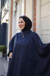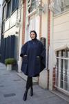 Bolivente Lacivert Buklet Kaşe Oversize Kaban
