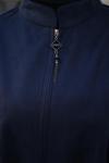 Desen Triko Kadın Dik Yaka Cebi Tığlamalı Uzun Yün Kaban 25023 Koyu Lacivert - Image 1