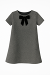Kadife Fiyonklu Kız Çocuk Simli Elbise – Gri