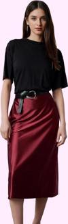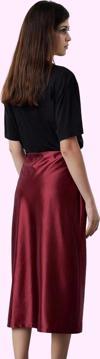 Bu göz alıcı bordo saten etek, günlük stilinizi bir üst seviyeye taşıyacak. A kesim kalıbı ve midi boyu ile her vücut tipine mükemmel uyum sağlar. Yumuşak ve akıcı saten kumaş, gün boyu konfor sunarken, şıklığıyla da göz kamaştırıyor. Beli lastikli tasarımıyla rahat bir kullanım deneyimi sunarken, aynı zamanda vücudunuzu sararak zarif bir siluet oluşturur. Cepsiz tasarımı, minimal ve şık bir görünüm sağlar. Yaz aylarında tercih edebileceğiniz nefes alan bir kumaştan üretilmiştir.