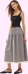 Yaz aylarının şıklığını ve rahatlığını bir araya getiren bu midi boy etek, günlük stilinize modern bir dokunuş katacak. Ekose desen ve A-line kesimiyle, hem şık hem de rahat bir görünüm elde etmenizi sağlar. %50 polyester ve %50 pamuk karışımı Terrycotton dokuma kumaş, nefes alabilirliği ve yumuşaklığıyla gün boyu konfor sunar. Eteğin altındaki dantel detay, şık bir görünüm kazandırırken, midi boy uzunluğu da her ortama uygunluğu sağlar. Günlük kombinlerinizden özel davetlere kadar her yerde rahatlıkla kullanabilirsiniz. Makinede yıkanabilir özelliği sayesinde pratik ve kolay bakımıyla da ön plana çıkar. Bu etkileyici eteği, farklı üstlerle kombinleyerek kendi tarzınızı yansıtabilirsiniz.