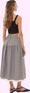 Bu etek, yüksek kaliteli Terrycotton kumaştan üretilmiştir. Bu malzeme, hem dayanıklı hem de yumuşak bir yapıya sahiptir, böylece gün boyu rahat bir kullanım sunar. A-line silueti, vücut tipinize uyum sağlayarak mükemmel bir görünüm oluşturur. Eteğin ekose deseni, klasik ve şık bir görünüm sağlar. Dantel detaylı uç kısmı, eteğe zarif bir hava katar. Midi boy uzunluğu, eteği her mevsim ve her ortama uygun hale getirir.