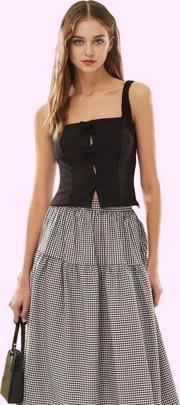 Siyah rengiyle her türlü kombinle uyumlu olan etek, 36-42 beden aralığında mevcuttur. Eteğin ölçüleri, ürün detay sayfasında bulunabilir. Hem günlük kullanım için hem de özel günler için uygun olan bu etek, gardırobunuzun vazgeçilmez bir parçası olacak. Yaz kombinlerinizin yıldızı olmak için ideal bir seçenek.