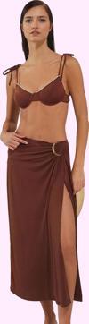 Şıklığı ve rahatlığı birleştiren bu kahverengi plaj eteği ile yaz günlerinin tadını çıkarın. Vücuda oturan A-line kalıbı, feminen silüetinize kusursuz bir şekilde uyum sağlar. Yüksek kaliteli örme kumaştan üretilen etek, nefes alabilir yapısıyla gün boyu konfor sunar. Midi boyu, her boyda kadına yakışan şık bir uzunluk sunarken, rahat hareket özgürlüğü sağlar. Plaj, havuz kenarı, yürüyüşler ve yaz akşamları için ideal kombinler yaratabilirsiniz.