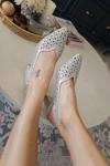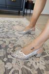 Şeffaf Taşlı Topuklu Gümüş Kadın Abiye Ayakkabı - Image 1