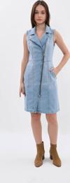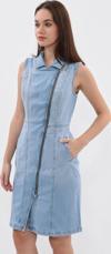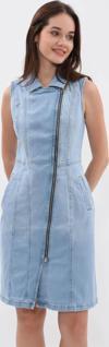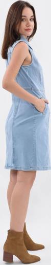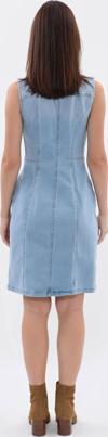 Kaliteli denim kumaştan üretilmiştir. Elbise kumaşı esnek bir yapıya sahiptir. Boydan fermuarlıdır. Önde 2 adet derin cebi vardır. Model üzerindeki elbise omuzdan boy ölçüsü 93 cmdir.