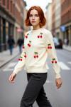 Ersefa Kadın Akrilik Triko Bisiklet Yaka Nakışlı Uzun Kollu Regular Kazak Kış Günleri İçin Konforlu Stil