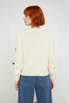 Ürün Özellikleri: Regular kalıp, %100 akrilik materyal, nakışlı işlemeli desen, bisiklet yaka, standart uzun kol, triko kumaş, ekru renk.