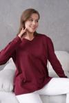 Kadın Koyu Pembe %100 Organik Pamuk V Yaka Triko Kazak Bluz Trıst-6102 - Image 1