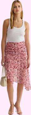 Yaz aylarının vazgeçilmezi olan bu şifon etek, asimetrik kesim tasarımı ve çiçekli deseniyle göz alıcı bir stile sahip. Yüksek bel yapısı, vücut hatlarınızı kusursuz bir şekilde ortaya çıkarırken, hafif ve nefes alabilir şifon kumaş gün boyu konfor sunar. Günlük kombinleriniz için ideal olan bu eteği, düz renkli bir tişört veya bluz ile tamamlayarak şık ve modern bir görünüm elde edebilirsiniz. Midi boy uzunluğu, her boy ve vücut tipine uygunluğu ile dikkat çekiyor. Etek, kolay yıkama ve bakım özellikleri sayesinde pratik kullanım sağlar. Bu etekle yazın enerjisini üzerinizden eksik etmeyin!