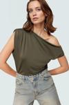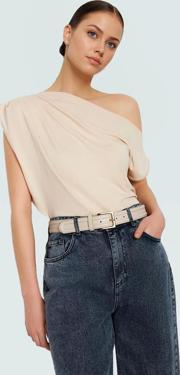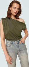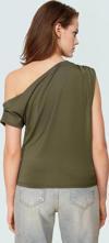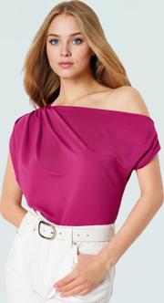 PayBuy Kadın Asimetrik Yaka Kısa Kollu Örme Bluz Konforlu Kesim Zarifane Tasarım Profesyonel Görünüm