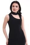 Kadın Asimetrik Yaka Sandy Kumaş Fırsat Ürün Diz Üstü Elbise