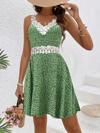 Kadın Askılı Dantel Yakalı çiçek Desenli Süprem Elbise