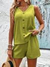 Kadın Askılı Kolsuz V Yakalı önden Düğmeli Bürümcük Bluz Ve Short Ikili Takım