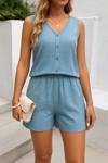 Martcini Kadın Askılı Kolsuz V Yakalı önden Düğmeli Bürümcük Bluz Ve Short Ikili Takım