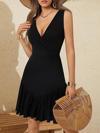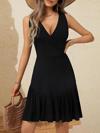 Kadın Askılı Kruvaze Yakalı Fırfırlı Janjan Krep Elbise