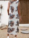 Kadın Askılı Yuvarlak Yaka Cepli Desenli Süprem Elbise