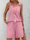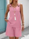 Kadın Askılı Yuvarlak Yaka Kuş Gözü Detaylı Bürümcük Bluz Ve Short Ikili Takım