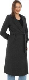 Ekol Kadın Deri Kemerli Torba Cepli Kaban 6045 Siyah