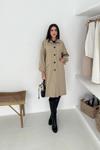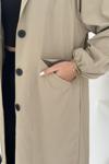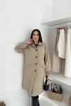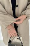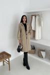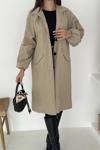 Meine Liebe'nin kadınlar için tasarladığı bu astarlı uzun trençkot, sokak stiline uygun bir şıklık sunar.