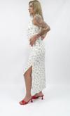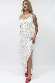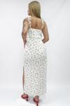 Kadın Ayarlabilir İp Akılı Yırtmaçlı Mavi Çiçekli Elbise