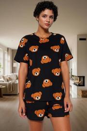 Evde rahatlık ve şıklığı bir arada arayan kadınlar için ideal olan bu pijama takımı, yumuşacık %100 pamuklu kumaşıyla gün boyu konfor sunuyor. Sevimli ayıcıklı deseniyle göz alıcı bir görünüme sahip olan takım, kısa kollu tişörtü ve şortuyla yaz aylarının vazgeçilmezi olacak. Normal bel şortu ve regular kalıbı ile vücuda mükemmel uyum sağlar. Rahatlığı ve şıklığı bir arada arayanlar için mükemmel bir tercih. Bu pijama takımı, 30/1 openend süprem dokuma tipiyle üretilmiş olup, dayanıklı ve uzun ömürlü kullanım sunar. Makinede yıkama imkanı ile pratik ve kolay bakımıyla da dikkat çekiyor. Siyah rengi ve ayıcıklı deseniyle modern ve şık bir görünüme sahiptir. Hem evde dinlenirken hem de uyurken rahat ve şık hissetmenizi sağlar. Bu pijama takımıyla kendinizi özel ve rahat hissedeceksiniz.