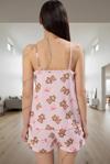 Yüksek kaliteli %100 pamuk malzemesi, hassas cildiniz için mükemmel bir seçimdir. Nefes alabilir yapısıyla sizi serin tutar ve terletmez. Regular kalıp, her vücut tipine rahatlıkla uyar. Normal bel şortu, hareket kısıtlamaz. V yaka tasarımı, şık ve modern bir görünüm sağlar. Ayıcık figürleri, sevimli ve canlı bir hava katmaktadır. Bu pijama takımı, her kadının gardırobunda olması gereken bir parçadır.