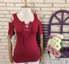 Kadın Bağcık Detaylı Viskon Kumaş Bluz 55cm
