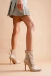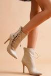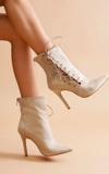 PayBuy Kadın Bağcıklı Topuklu Kısa Bot Saten Görünümlü İnce Topuklu Şık Ayakkabı