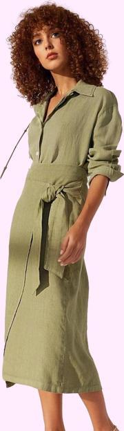 PayBuy Kadın Bağlamalı Midi Etek Keten Düz Desen Günlük Şıklık Hafta Sonu Yaz Aylarının Vazgeçilmezi