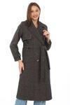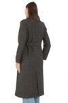Mzp Kartan Kadın Balık Sırtı Yünlü Dokuma Kaşe Kaban – Kruvaze Yaka, Kuşaklı, Cepli, Astarlı Uzun Boy Tesettür
