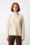 Ersefa Kadın Balıkçı Yaka Oversize Düz Triko Kazak Kış Aylarında Modern ve Rahat Bir Tarz Sunar Kaliteli
