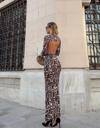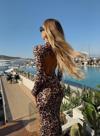 Kadın Balıkçı Yaka Sırt Dekolteli Leopar Desen Maxi Boy Elbise