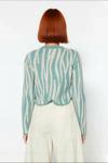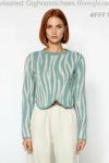 Ürün Özellikleri: Regular kalıp, akrilik materyal, zebra desen, bisiklet yaka, standart kol, triko kumaş, yeşil renk, crop boy, cepsiz, basic siluet.