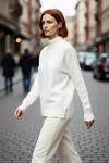 Lela Yarım Fermuarlı Oversize Triko Bayan Kazak 4616079 KREM - Image 1