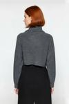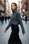 Ürün Özellikleri: Oversize kalıp, akrilik materyal, düz desen, dik yaka, düşük kol, triko kumaş, gri renk.