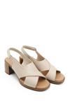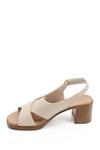 * Gön Hakiki Deri Cırt Bantlı Kalın Topuklu Kadın Sandalet