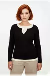PayBuy Kadın Bej Fitted Fitilli Triko Kazak İnce Yapılı Çift Katman Görünümlü İlkbahar Sonbahar İçin İdeal